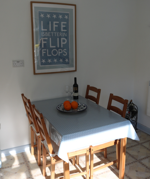 A large lounge diner is at the rear of the apartment, with plenty of seating and a dining table should you wish to eat in here. Freeview, Wi-Fi and plenty of local information books and leaflets are here too. There is a pair of binoculars here for your use to take a closer look at those beautiful views! A door leads from this room onto the large balcony that runs the length of the apartment taking in the sea and island views. A perfect place to sit and have an early evening drink. Outdoor furniture is provided.